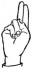 На ћирилици написано НЕБОЈША ШЋЕЛОВИЋ састоји се из 15 слова [?]. Исписано ћириличном једноручном азбуком за глувонеме: